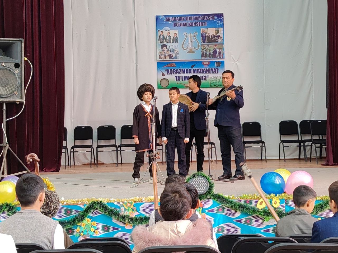 Xorazm viloyati Madaniyat boshqarmasi boshligʻi G'. Eshchanovning 2025-yil 14-noyabrdagi 72-sonli buyrugʻining reja grafikada ko'rsatilgan vazifalar ijrosini ta'minlash maqsadida joriy yilning 6-dekabr kuni Shovot tumani 17-son Bolalar musiqa va sanʼat maktabi baxshi yo'nalishi "Avazxon bolalar ansambli" o'quvchilari ishtirokida "Bu mani chiroyli Xorazm o'lkam" deb nomlangan konsert dasturi bo'lib o'tdi.